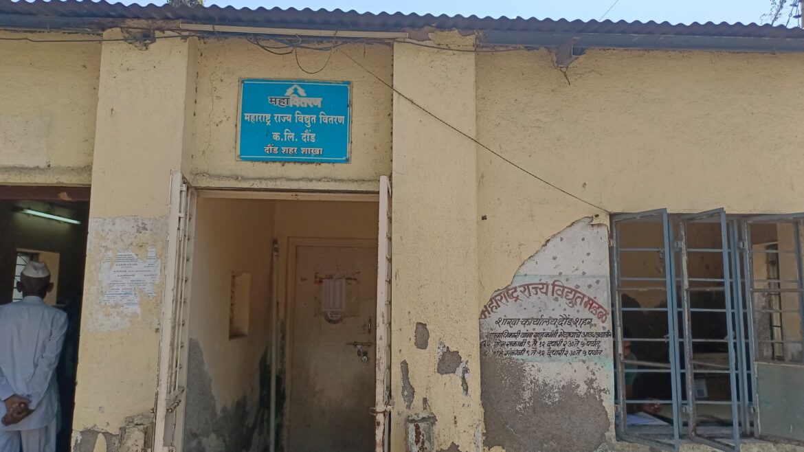 दौंड (प्रतिनिधी) — दौंड शहरातील महावितरण कार्यालयात नागरिकांच्या तक्रारींकडे दुर्लक्ष केल्याने संतप्त प्रतिक्रिया उमटत आहेत. शहरातील अनेक नागरिकांच्या घरातील वीज मीटरमध्ये बिघाड झाल्यामुळे त्यांना दर महिन्याला दुप्पट व तिप्पट बिल आकारले जात आहे. या संदर्भात ऑफलाईन आणि ऑनलाईन तक्रार केली आणि 260 रुपये मिटर चेक साठी करूनही तीन महिन्यांहून अधिक काळ उलटला आहे, परंतु महावितरणकडून कोणतीही ठोस कारवाई झालेली नाही.